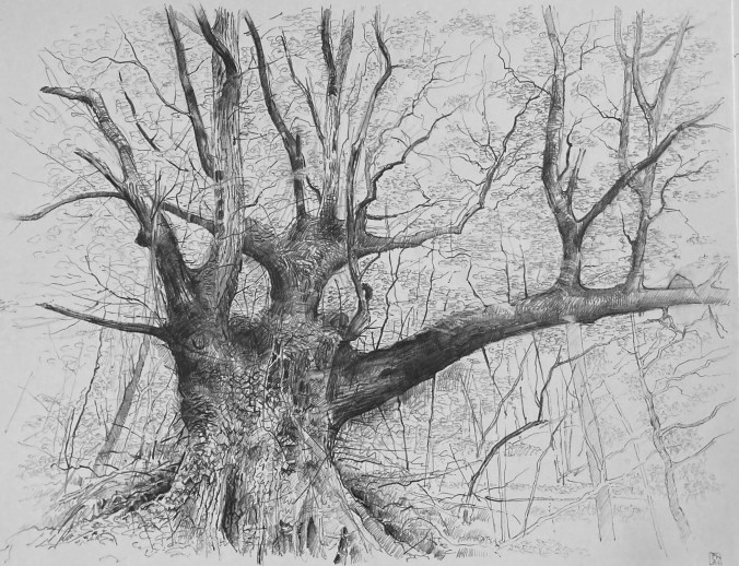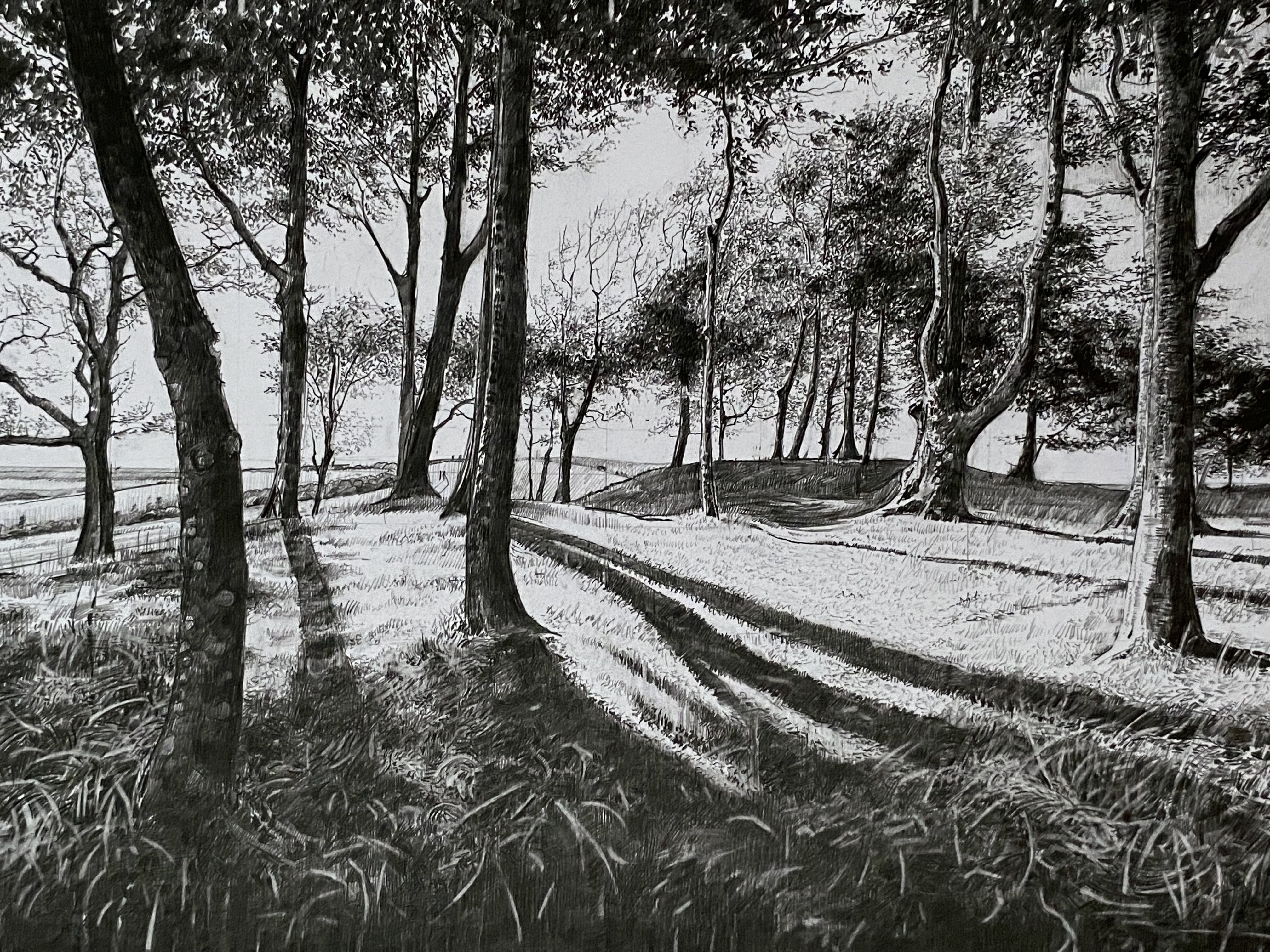 Chanctonbury Ring, Graphite on Bristol Board, 26 x 19 cm, © Paul Newman