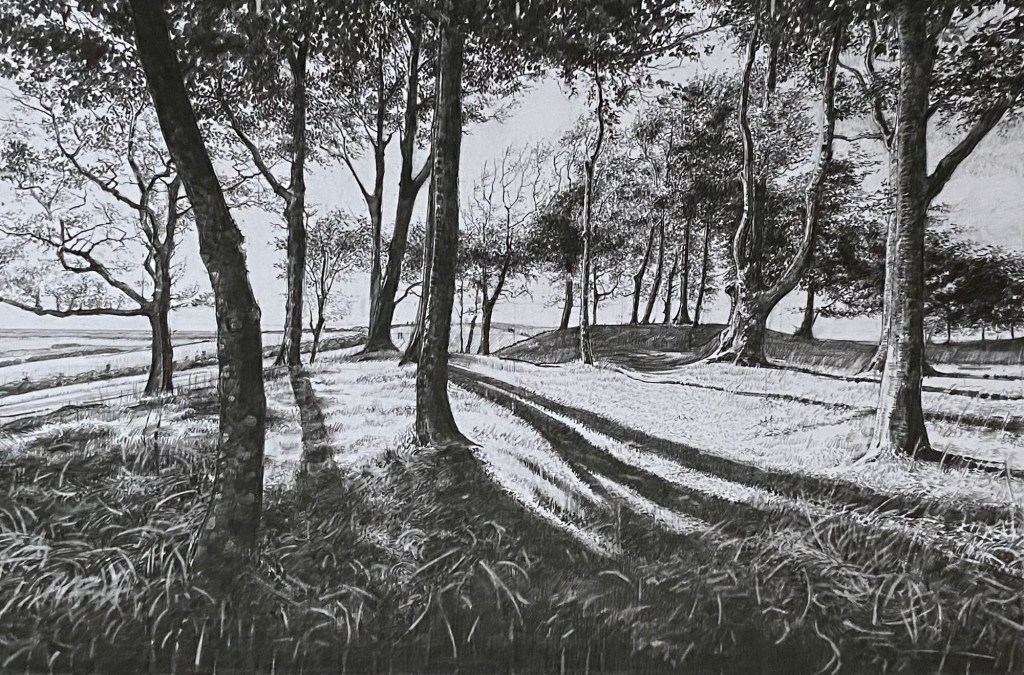 Longer drawings are made using a variety of pencil grades and more rapid pieces are created with clutch pencils and erasers. Soft tones are continually blended and overlaid and built up in layers. Observations, notes and sketches are made whilst out walking with photography as another tool to develop ideas, working on the final piece when back in the studio.