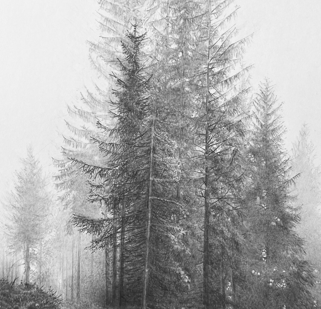 Yew Grove, Hanover Wood, Dorset/Somerset Border, Graphite on Bristol Board, 17 x 24 cm, © Paul Newman